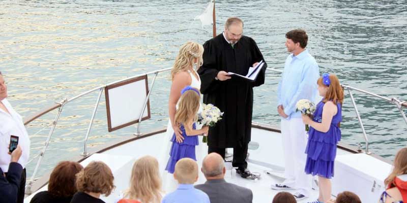An elegant wedding on the water! When you book a Chicago party cruise rental on our luxury yacht, you will have the opportunity to set cruise across second largest of the Great Lakes! You can explore the coast of Chicago and experience the city in an entirely different way! On a warm Spring or Summer day, you can soak up some sun and enjoy the nice cool breeze of Lake Michigan! In the evening you can watch the beautiful sun set across the horizon, while you enjoy a relaxing drink with you friends and associates. Be sure to book a wedding boat rental in Chicago today on The Sophisticated Lady, a luxury yacht!