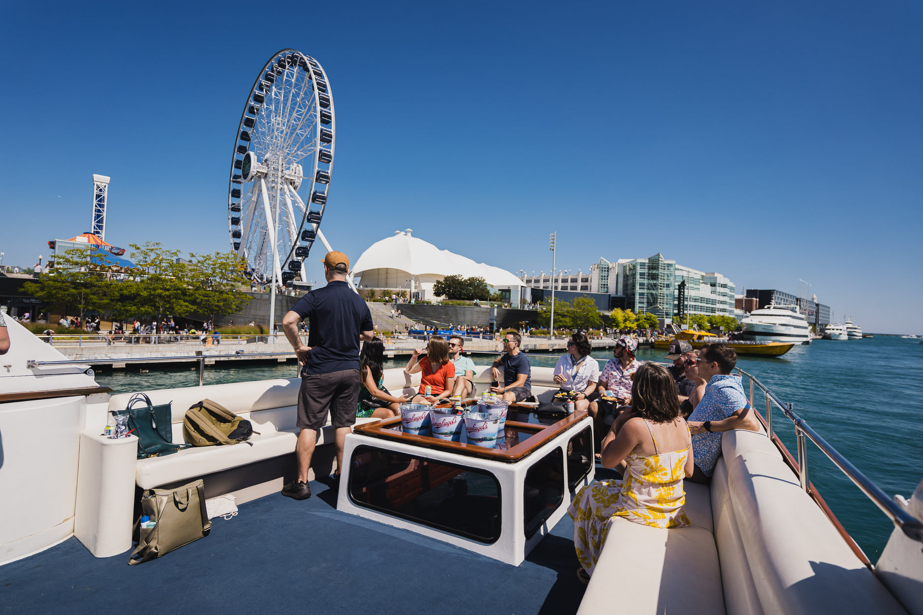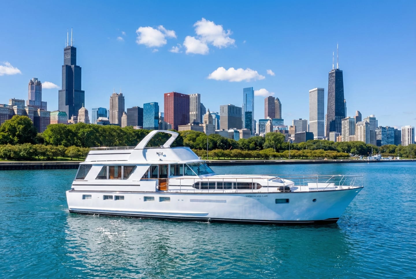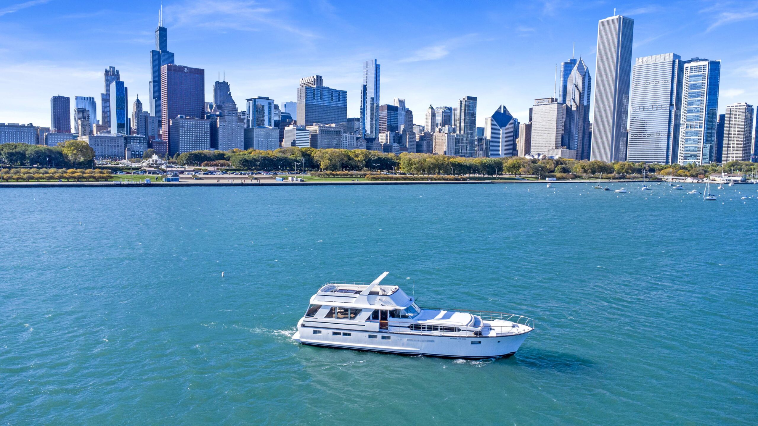 The Sophisticated Lady, a 72′ Chris Craft moored out of Burnham Harbor, is a commercial USCG Inspected yacht that accommodates up to 49 passengers. Perfect for corporate events and large reception boat parties, this yacht includes 3 floors, 2 bathrooms, a full service bar, and premium bluetooth audio sound system. Rates start as low as $1500 per hour and include a captain and crew. Please note that our pricing consists of a per person bar package, sales tax, and service charge. Additional catering is available, however, not required.